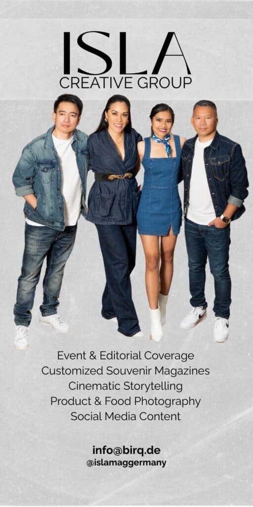 ISLA Creative Group is a Germany-based agency showcasing Filipino talent through photography, videography, and media design. From events to campaigns, we capture culture, tell stories, and create lasting impressions.
