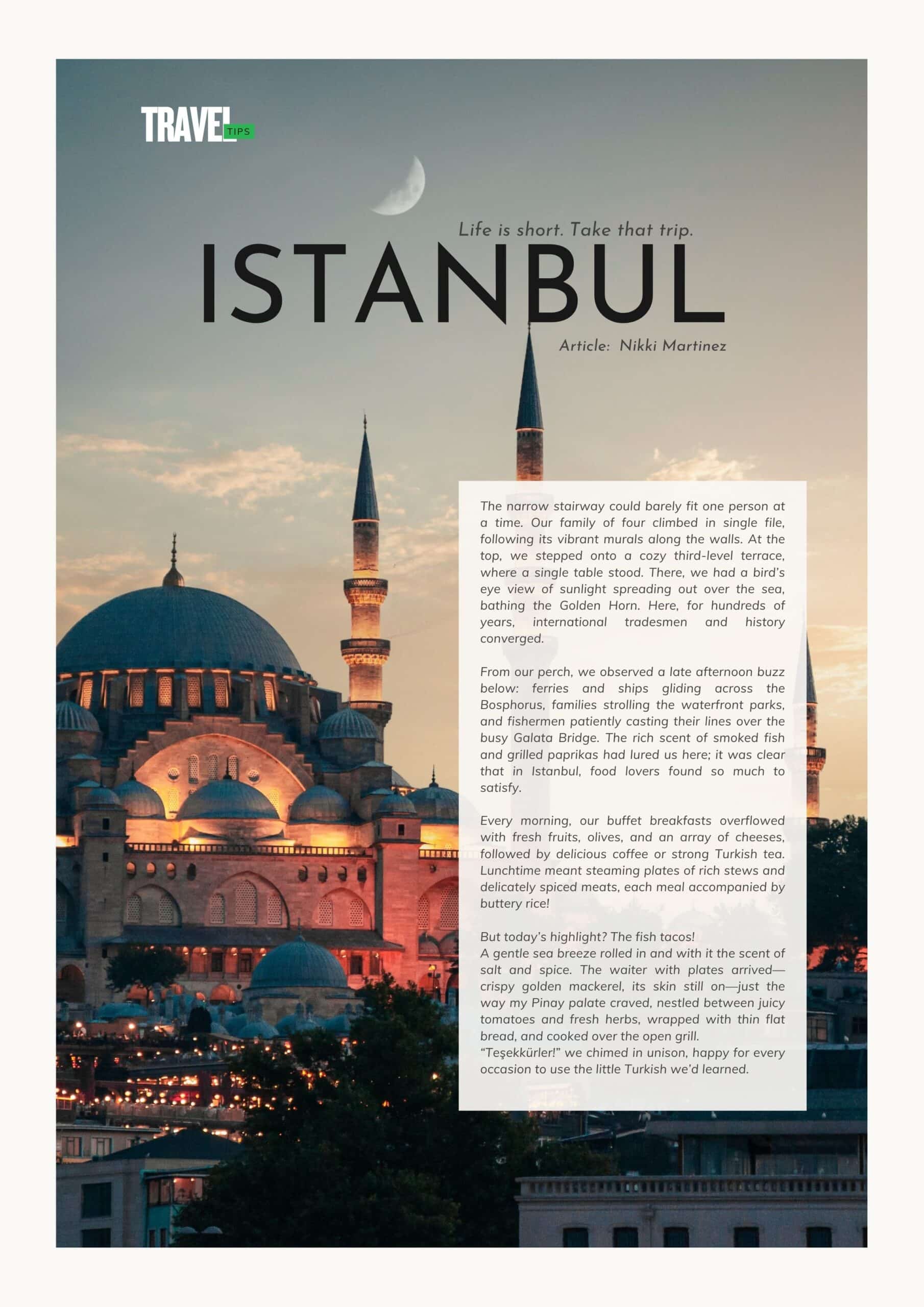 A Bosphorus Cruise – The best way to see both sides of the city from the water’s perspective. Email: [email protected]